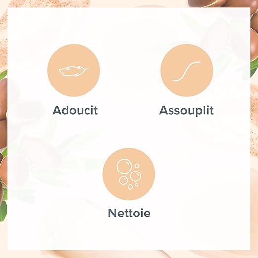• ADOUCIT : Avec sa formule hydratante grâce à l'Huile d'Argan et de Karité et leurs vertus nourrissante, votre peau retruvera de sa douceur pour un toucher tendre.