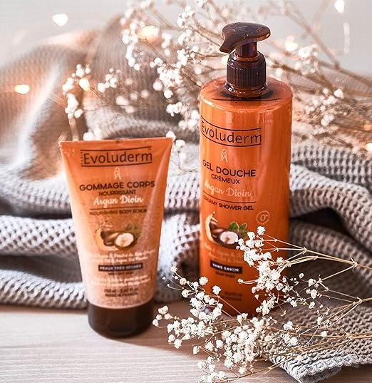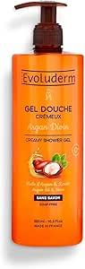 EVOLUDERM - Gel Douche Crémeux Argan Divin - 500 ml - 95% d'Origine Naturelle - Végan - Fabrication Française
