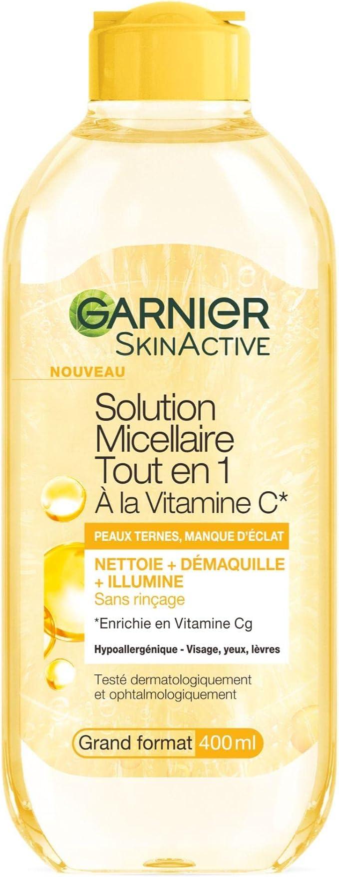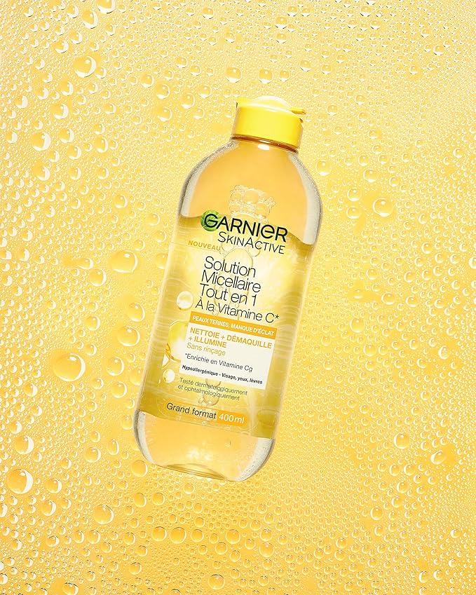 EAU MICELLAIRE TOUT-EN-1 : Découvrez la solution micellaire Garnier à la vitamine C, l'alliée ultime pour une peau propre et éclatante au quotidien. Conçue pour les peaux ternes, elle prend soin de vous en un seul geste.