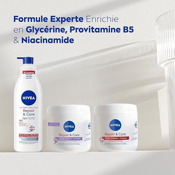 NIVEA REPAIR & CARE Lait Réparateur Corps Peaux Très Sèches (1x 250 ml) — Lait Corps Hydratant à la Glycérine, Provitamine B5 & Niacinamide
