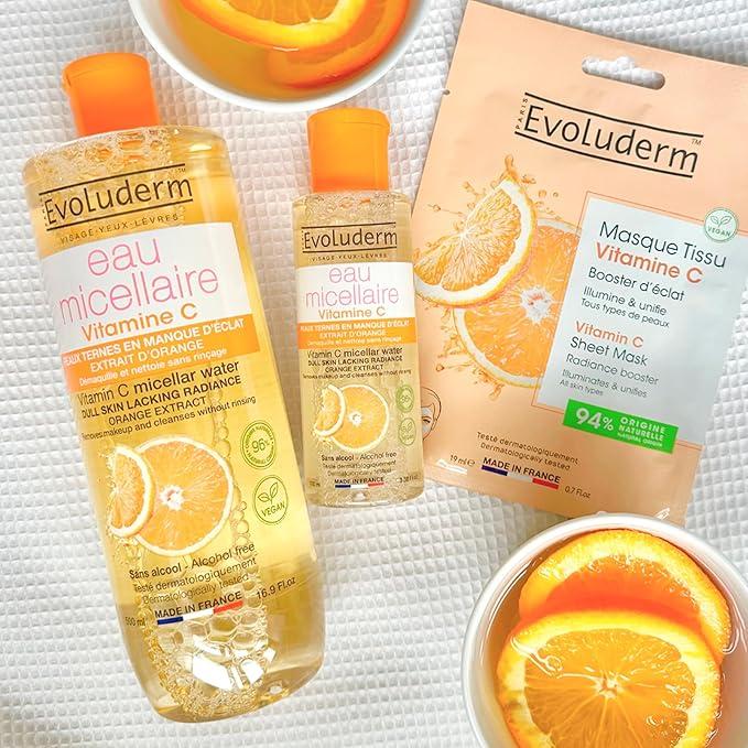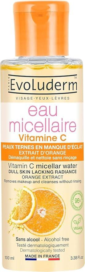 EVOLUDERM – Eau Micellaire Démaquillante Vitamine C - 100 ml - 96% d’Origine Naturelle - Végan - Fabrication Française